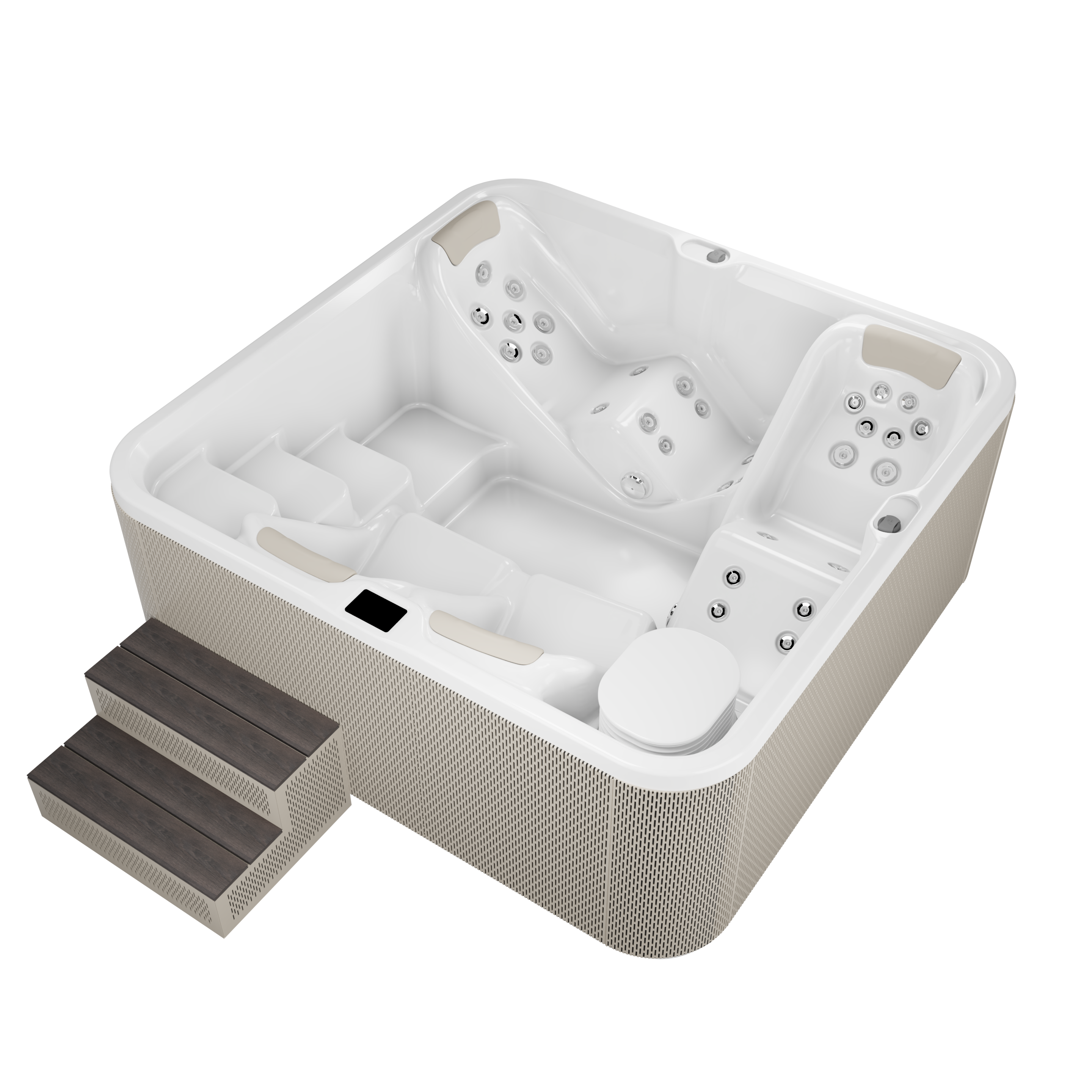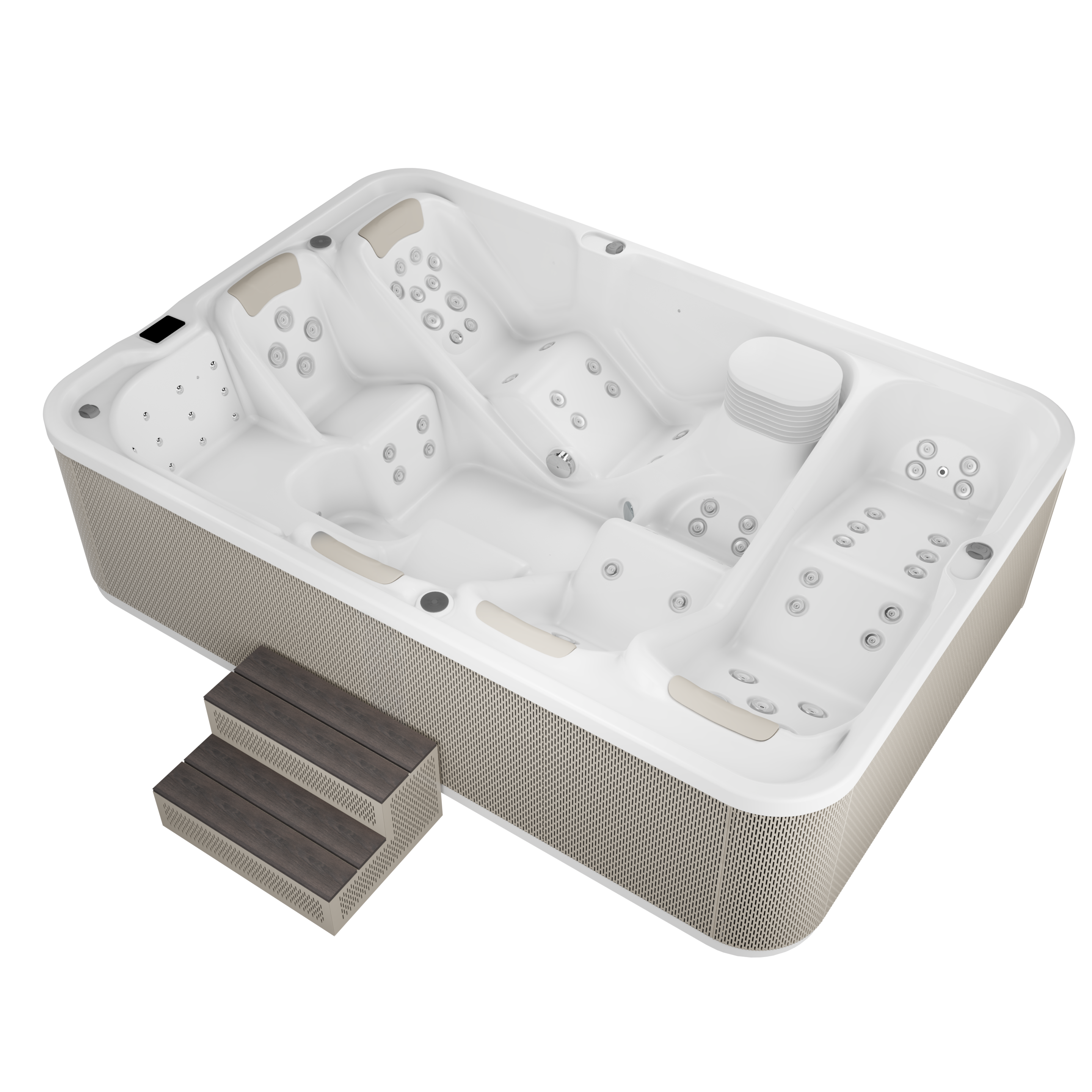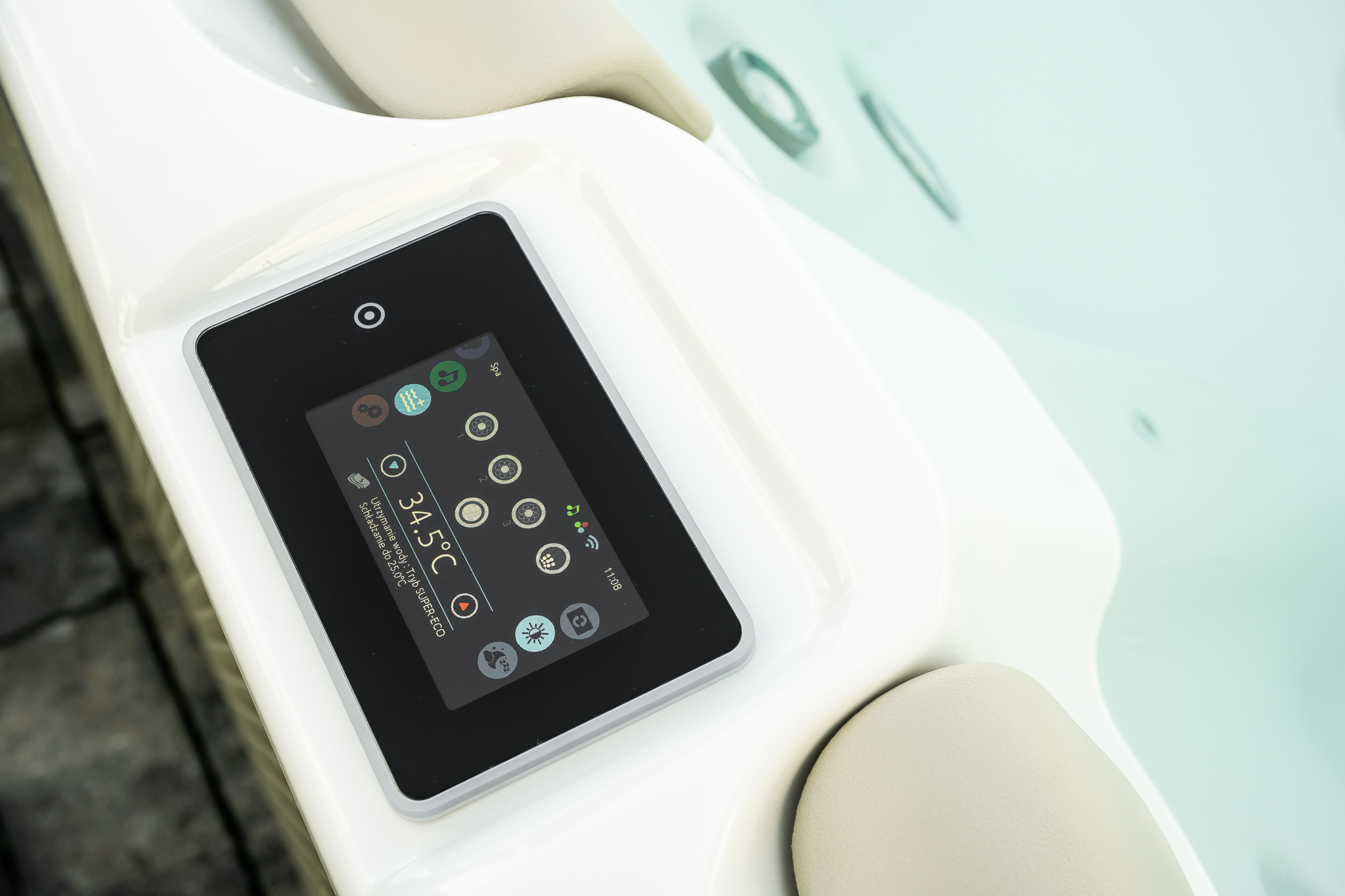 EUROPOOL SPA KADE ergonomski dizajnirane i proizvedene u Poljskoj. U proizvodnji koristimo fleksibilnu akrilnu konstrukciju američke kvalitete i komponente tvrtke Gecko vodećeg kanadskog proizvođača. Inovativno ojačanje kade slojem Barrier Coat, osiguravaju stalnu izdržljivost dugi niz godina i puno bolju izolaciju. Instalacija mlaznica bez ljepila i sustav spajanja opreme Quick Connect olakšava kasnije održavanje opreme. Vanjska obloga izrađena je od kvalitetnog perforiranog aluminija u boji. Unutrašnja konstrukcija je od nehrđajućeg čelika, što daje čvrstoću, stabilnost i otpornost na vremenske utjecaje. Kade su izrađene s velikom pažnjom na detalje, preciznom ručnom obradom, bez masovne proizvodnje.