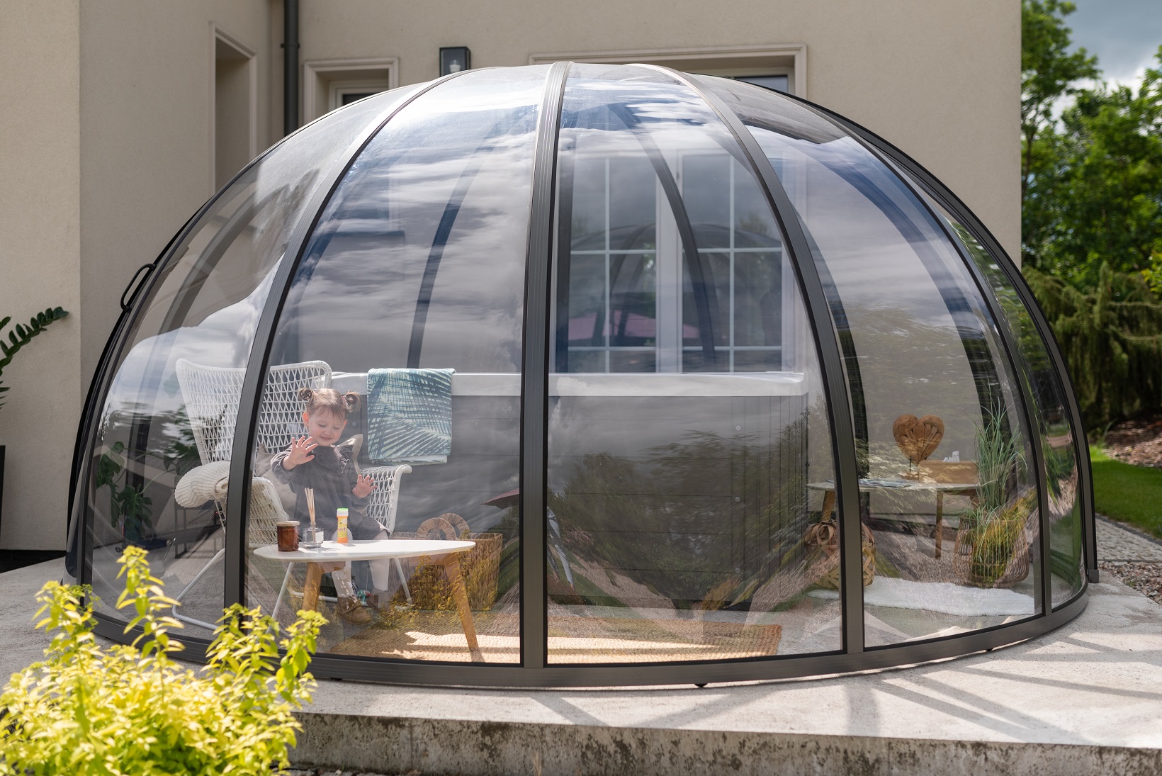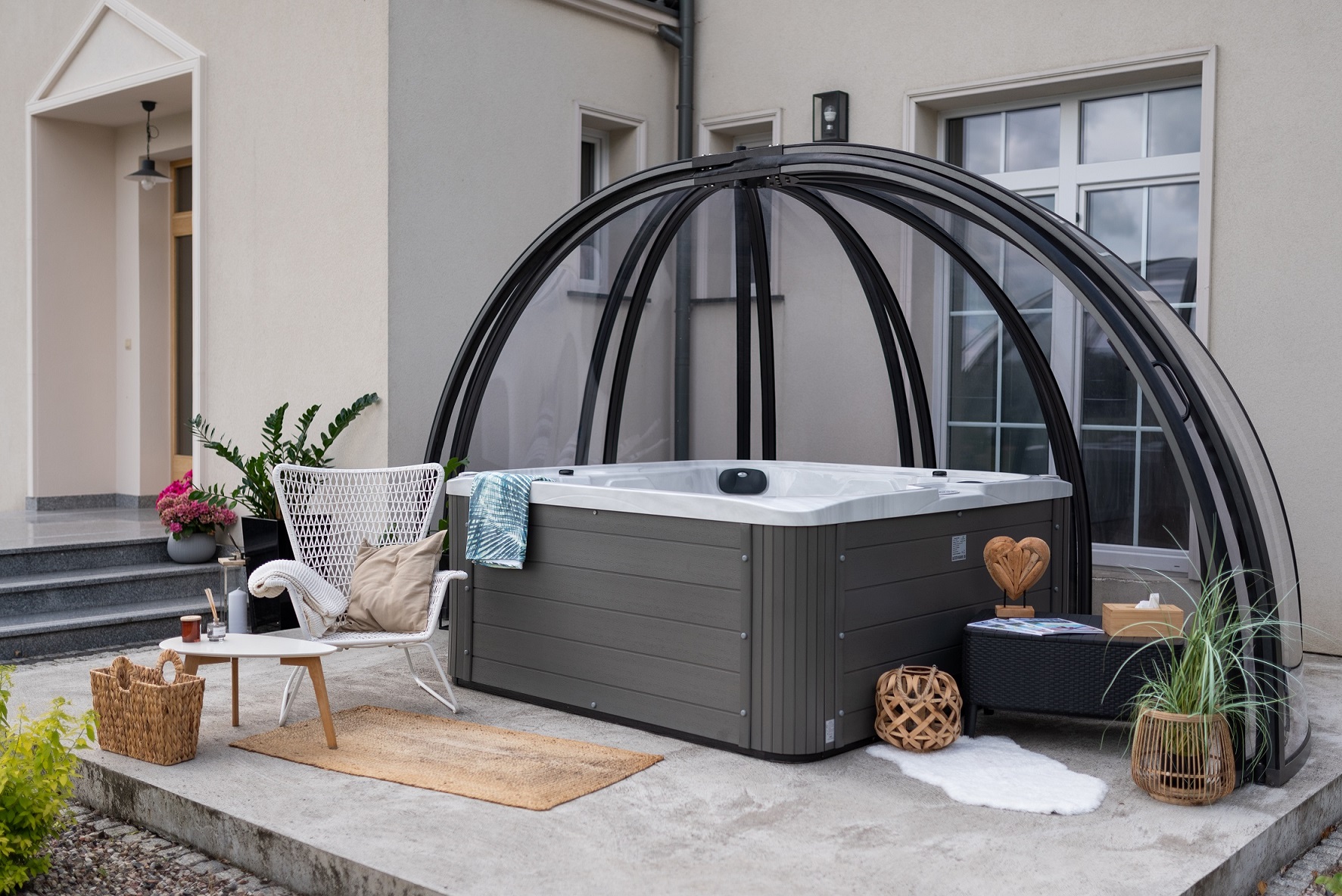 Neka vaš vrt bude omiljeno mjesto za provođenje slobodnog vremena ove godine, a opuštanje u spa kupelji neometano radi kiše, insekata ili vjetra. Intimniji osjećaj, zaštitu vašeg namještaja i spa kade, pruža ova prekrasno dizajnirana kružna kupola.