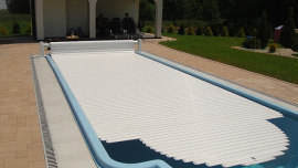 Rolete za bazene su elegantno i korisno pokrivalo koje će vam uštediti do 80% energije za grijanje bazena i vrijeme potrošeno na čišćenje. Ako se bazen nalazi unutar kuće, svakodnevno pokrivanje bazena smanjiti će isparavaje vode a time i nastajanje pljesni na zidovima. Profili rolete plutaju na vodi, a stalak može biti ugrađen nadzemno ili pod vodom u za to predviđenu komoru. Europool ima nekoliko modela bazena sa prostorom za podvodnu roletu, a svi ostali modeli mogu imati nadzemne rolete. Pokretanje je manualno ili automatski. Automatska roleta ima motor koji radi na ključ ili daljinsko upravljanje. Materijali profila su PVC ili POLIKARBONAT. Polikarbonat ima bolja mehanička i izolacijska svojstva, ali je i skuplji. Profile je moguće odvojiti radi zamjene ili čišćenja. Kada se voda u bazenu zimi prazni do određene visine, roletu je potrebno zarolati na stalak i pokriti.