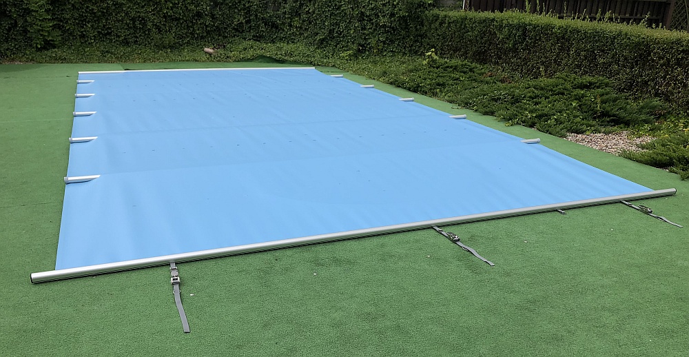 Zimsko pokrivalo može se koristiti cijele godine. Zahvaljujući ojačanjima prilagođeno je za vjetrovita i snježna područja. Pokriveni bazen zaštita je od vremenskih nepogoda, ali i od neželjenog pada u vode. Sastoji se od antialergijske poliesterske tkanine 580g/m2 obložene pvc slojem, cijevi fi45 od anodnog aluminija i inox sitnih djelova za pričvršćivanje. U kompletu dolazi kurbla za ručno namotavanje međutim i bez nje vrlo lako se koristi. U ponudi su boje plava i siva.