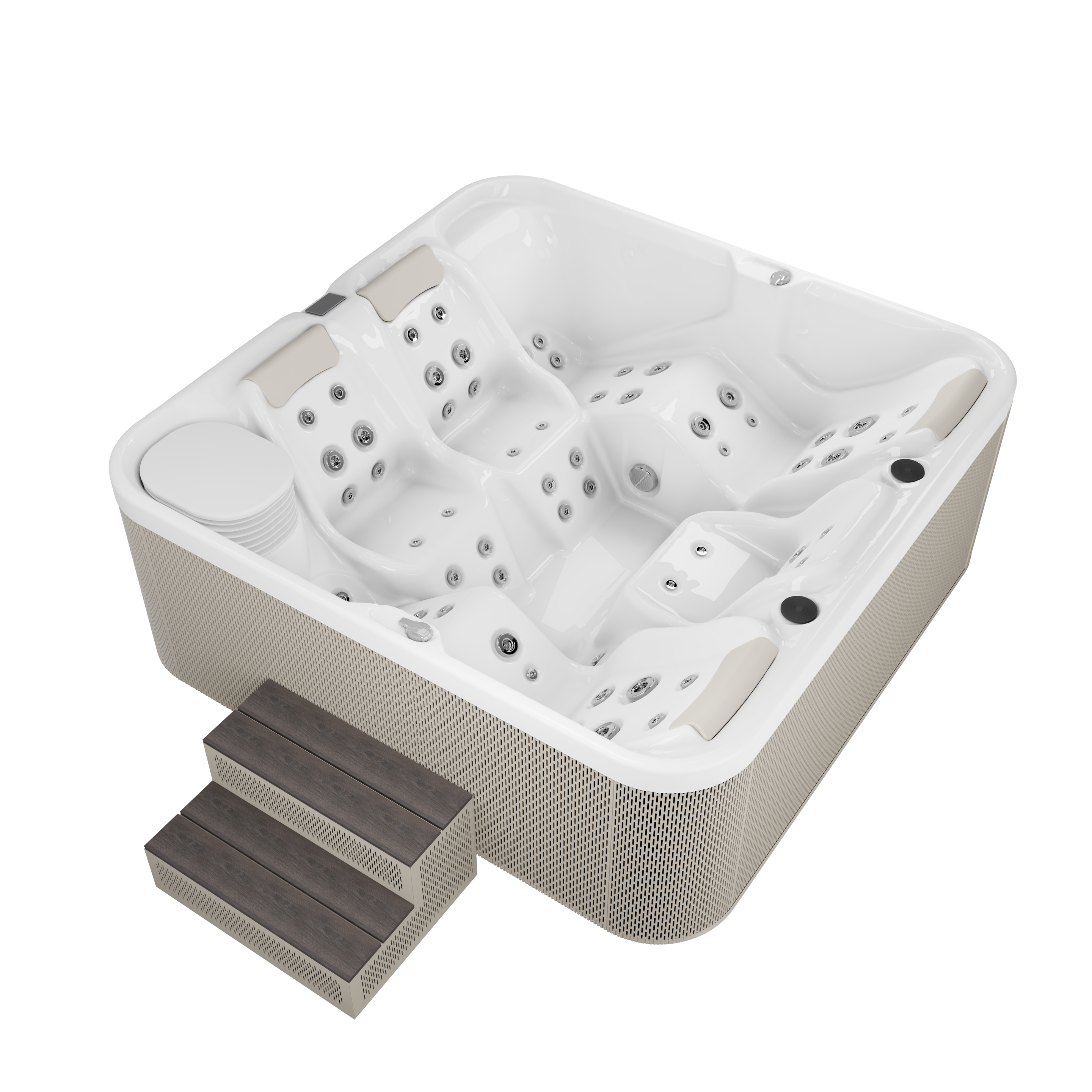 EUROPOOL SPA KADE ergonomski dizajnirane i proizvedene u Poljskoj. U proizvodnji koristimo fleksibilnu akrilnu konstrukciju američke kvalitete i komponente tvrtke Gecko vodećeg kanadskog proizvođača. Inovativno ojačanje kade slojem Barrier Coat, osiguravaju stalnu izdržljivost dugi niz godina i puno bolju izolaciju. Instalacija mlaznica bez ljepila i sustav spajanja opreme Quick Connect olakšava kasnije održavanje opreme. Vanjska obloga izrađena je od kvalitetnog perforiranog aluminija u boji. Unutrašnja konstrukcija je od nehrđajućeg čelika, što daje čvrstoću, stabilnost i otpornost na vremenske utjecaje. Kade su izrađene s velikom pažnjom na detalje, preciznom ručnom obradom, bez masovne proizvodnje.