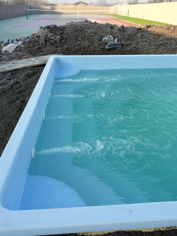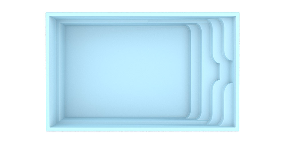 PROCES PROIZVODNJE/SLOJEVI: Priprema kalupa > Dupli sloj Gelcoat-a u boji > Antiosmozni sloj > Konstrukcija od staklenih mata sa vinilester i poliester smolama > Rowing ojačanja i metalna ojačanja > Poliuretanska izolacija > Završna obrada rubova > Rezanje otvora i ugradnja opreme na bazen