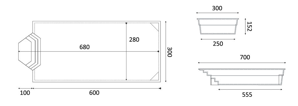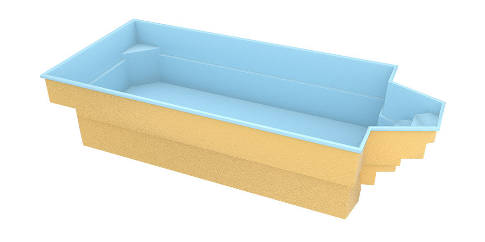 Bazen sa dva podvodna podesta i stepenicama u obliku trapeza.