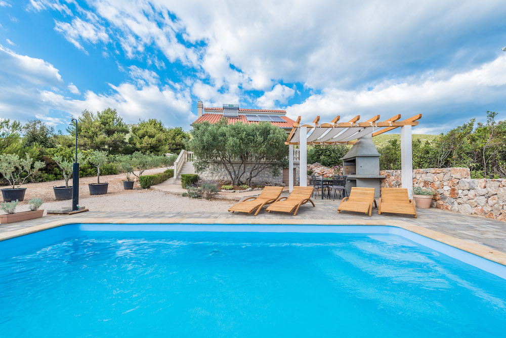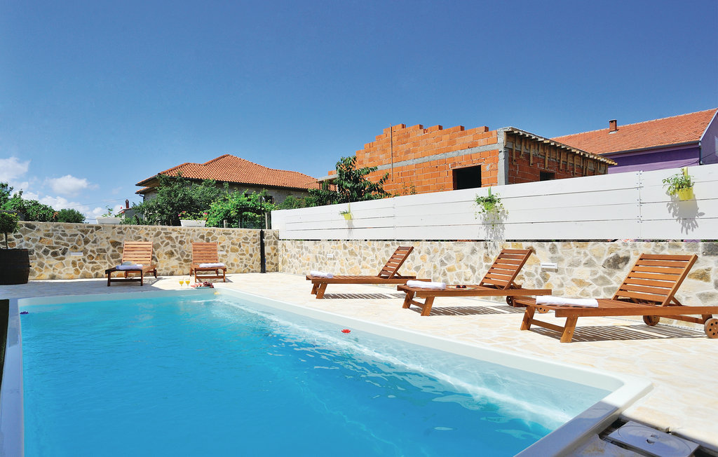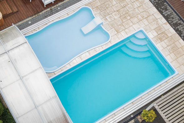 Pravokutni bazen sa stepenicama u desnom kutu.