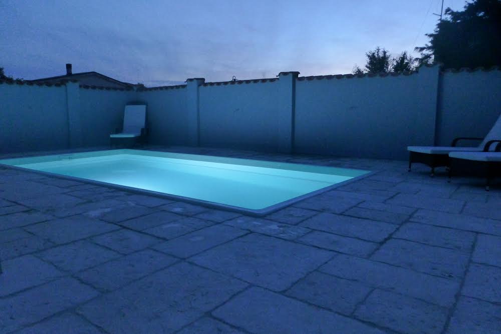 Manji pravokutni bazen sa stepenicama u lijevom kutu.
