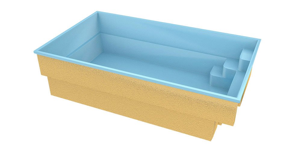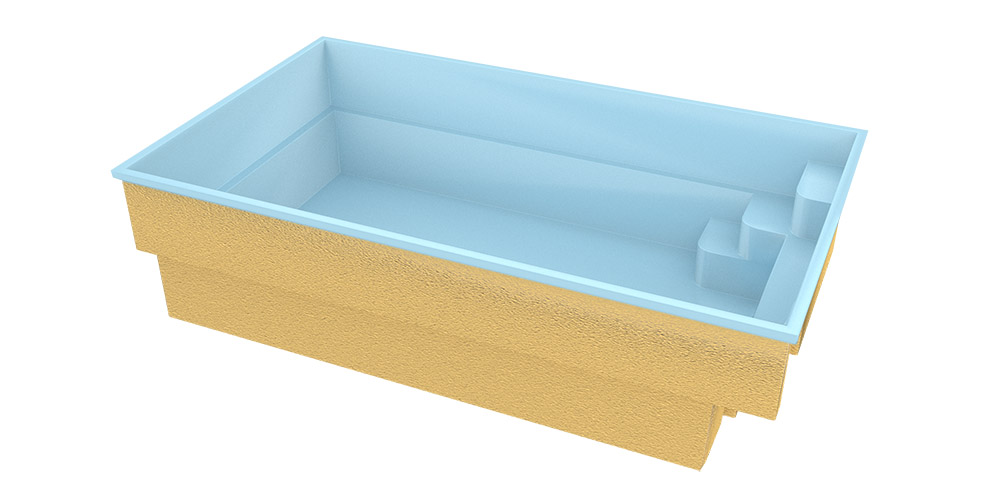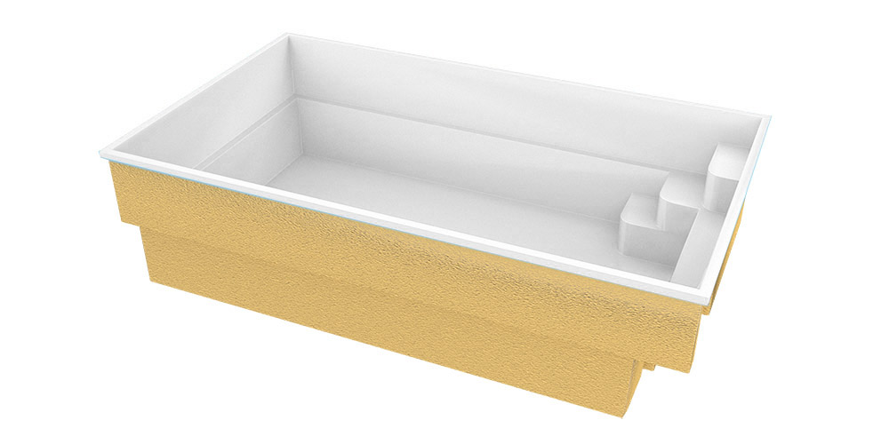 Pravokutni bazen sa podvodnim sjedalom,klupom i manjim stepenicama u desnom kutu.