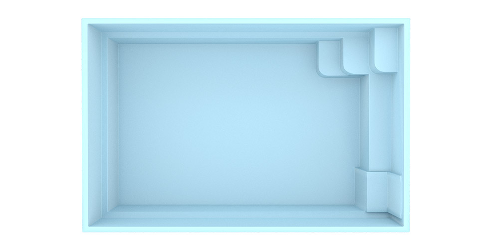 Pravokutni bazen sa ugrađenim podvodnim sjedalom,klupom i manjim stepenicama u desnom kutu.